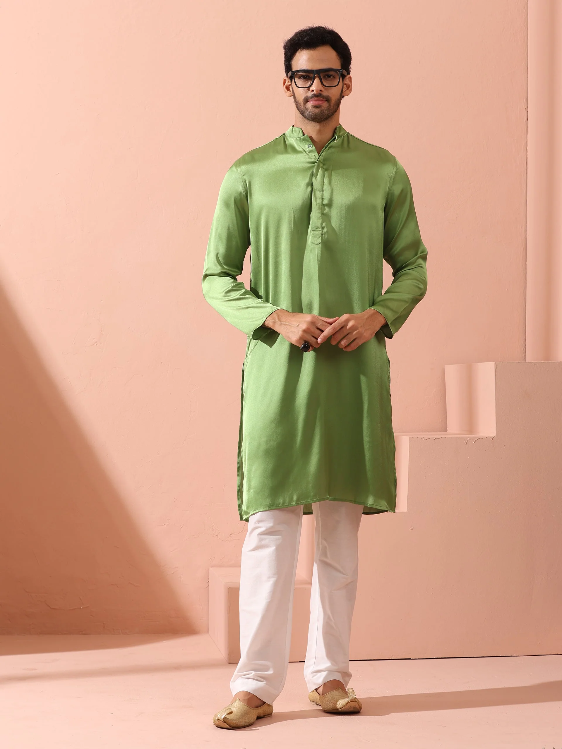 Green Satin Kurta which is Elegant and Unique! Elevate your style and make a lasting impression with the Satin Kurta !